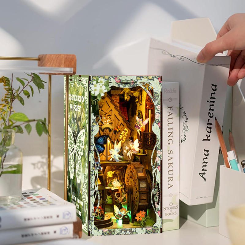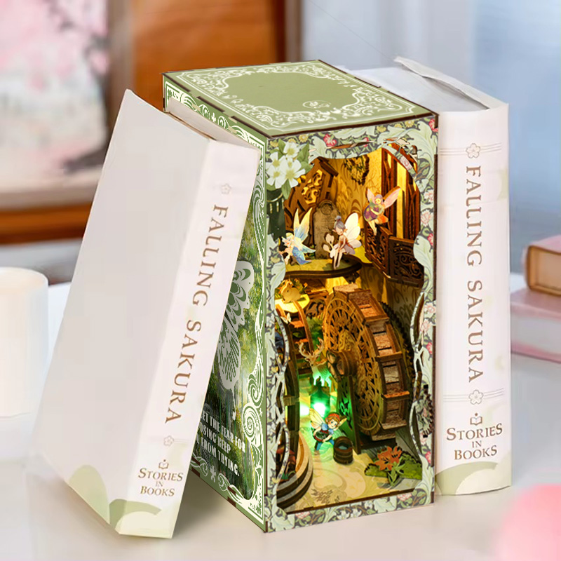 New Style Custom Oem Odm UV Printing Wood Book-nook Library Diy Handmade Assembly Book Nook Sakura