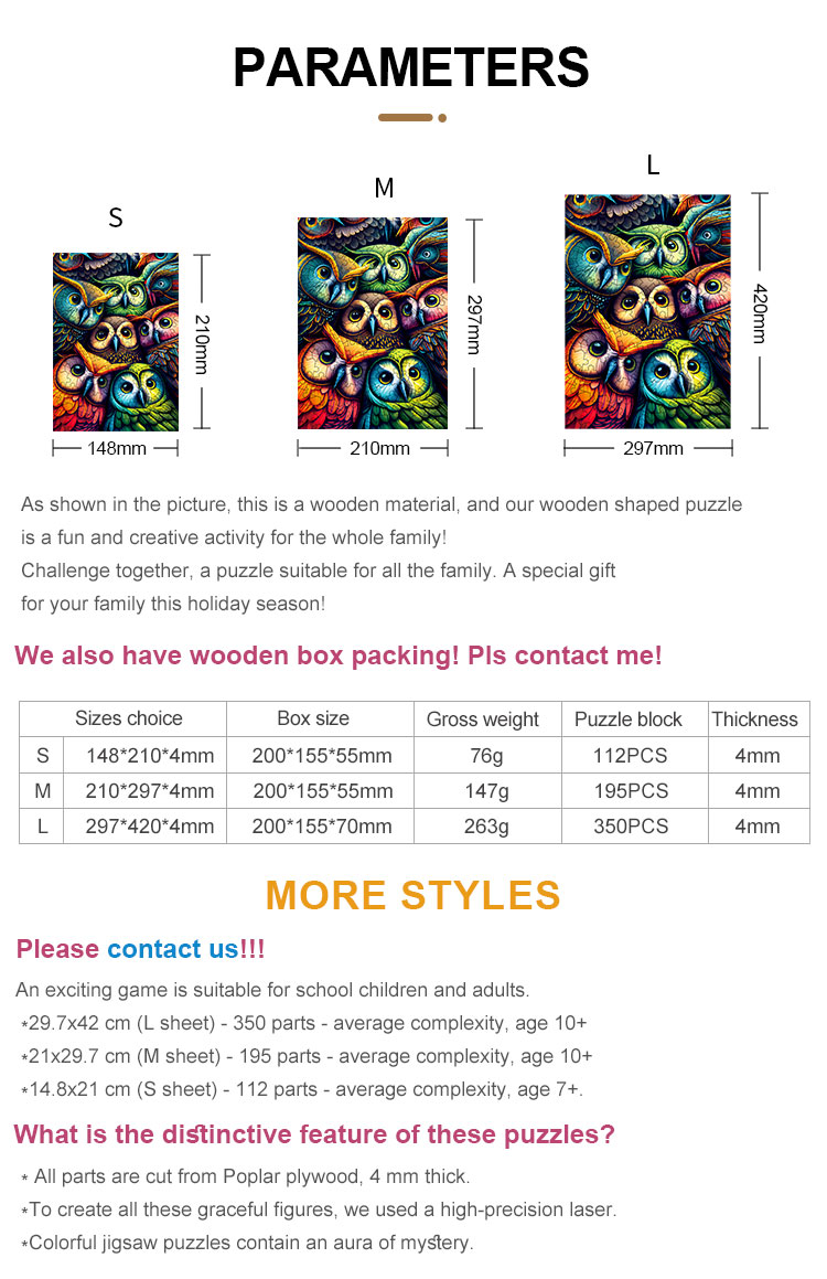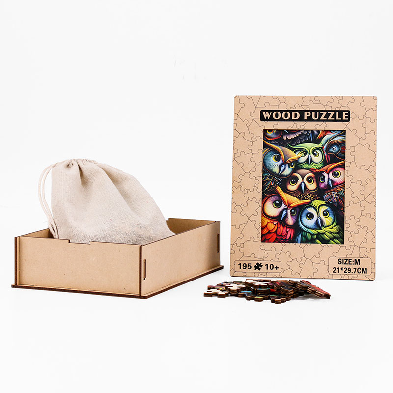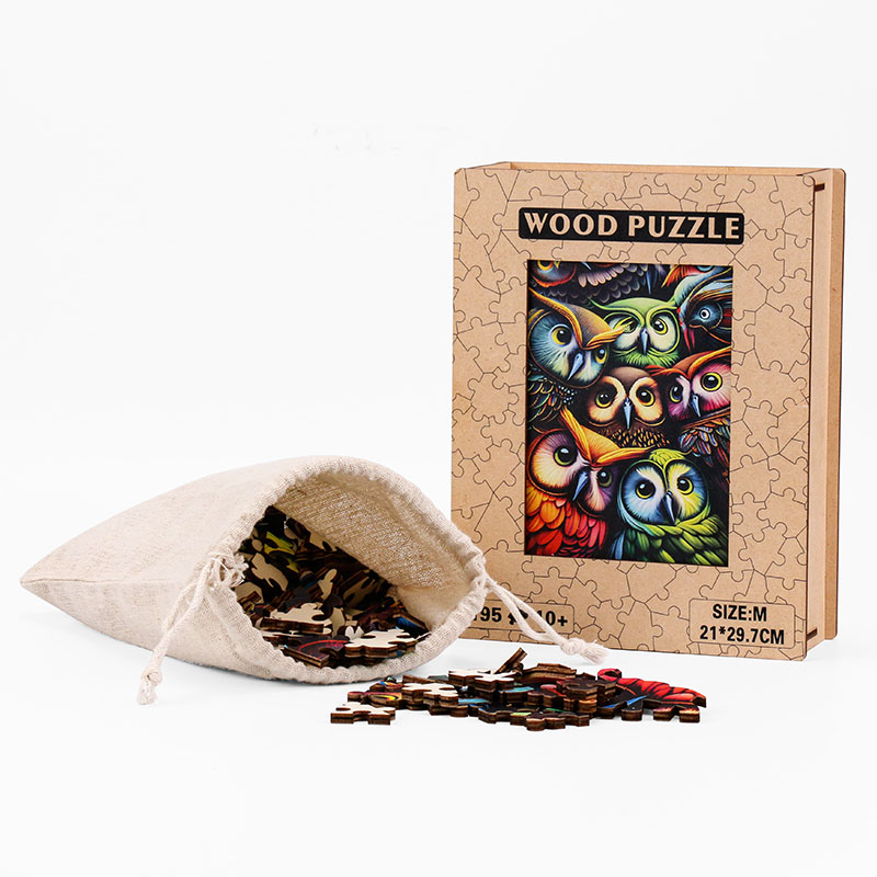 Discover the charm of the Owl jigsaw puzzle, a beautifully crafted wooden puzzle for adults and children that combines art, challenge, and relaxation in one engaging activity. Made from durable 4mm poplar plywood, this owl jigsaw puzzle is precision-cut using laser technology, ensuring smooth edges, perfect fitting, and a premium tactile feel.