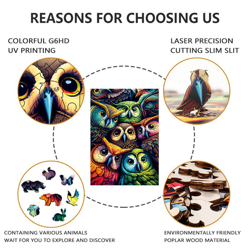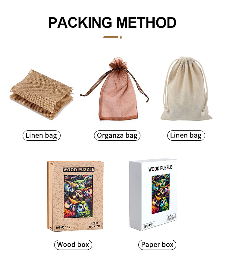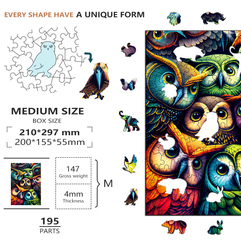A2: Each piece of the owl jigsaw puzzle has a unique shape, laser-cut with artistic precision, making every build an adventure.