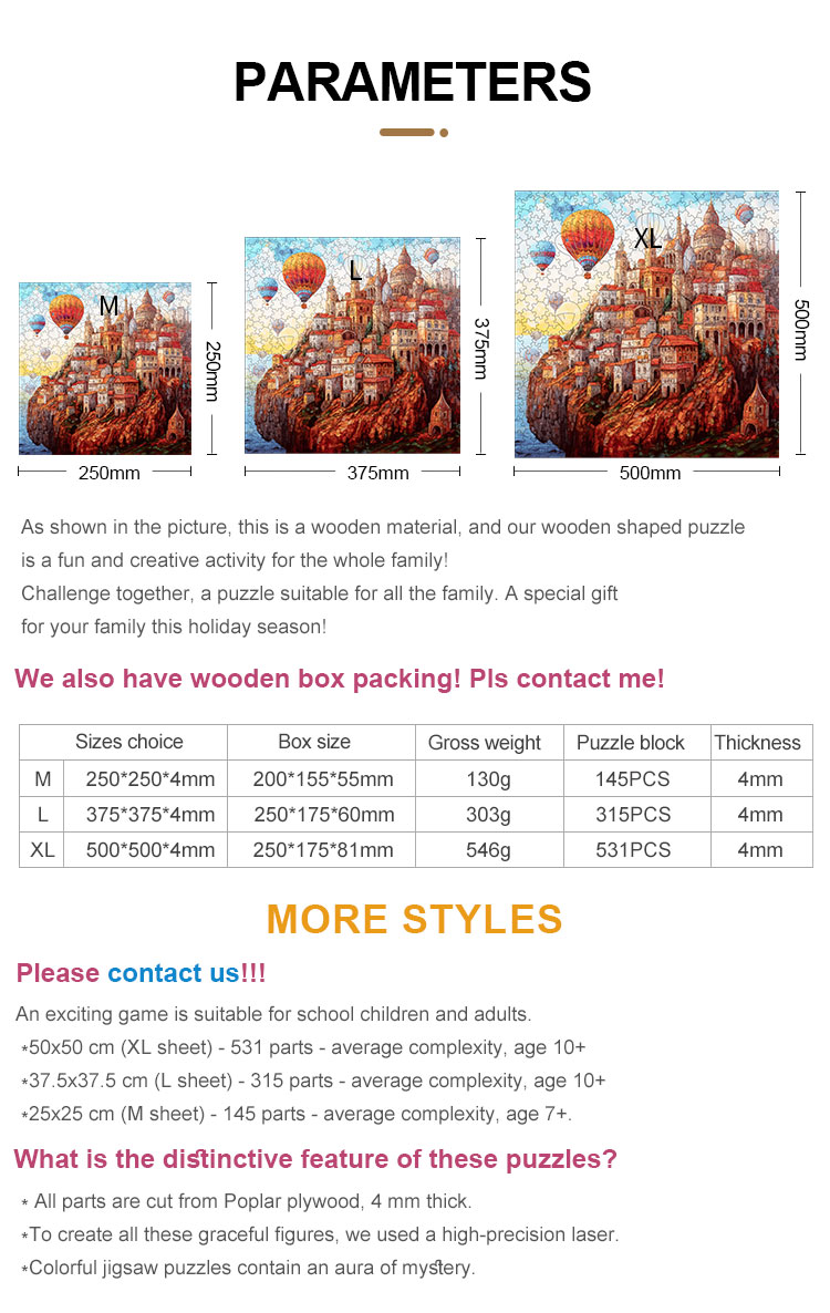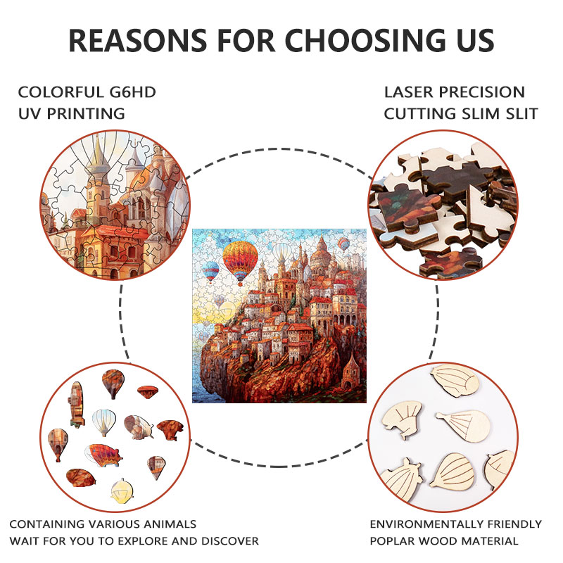 Explore the art of architecture with our Wooden Construction Puzzle, a beautifully crafted architectural puzzle designed for both fun and educational purposes. Each piece of this heteromorphic puzzle is a unique shape, precision-cut from 4mm Poplar basswood using high-precision laser technology. The smooth edges ensure safety for children and adults alike. The figured illustration is carefully cut along the contours and divided into many uniquely shaped pieces, creating a challenging and visually stunning architectural jigsaw puzzle. Perfect for schools, families, or puzzle enthusiasts, it provides hours of engaging play and creativity.