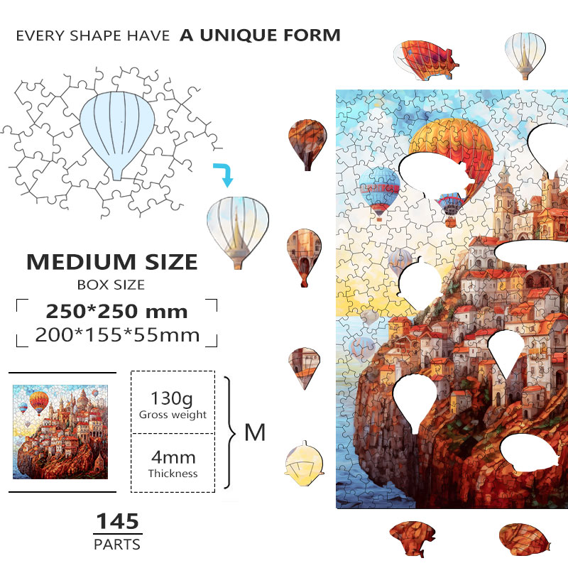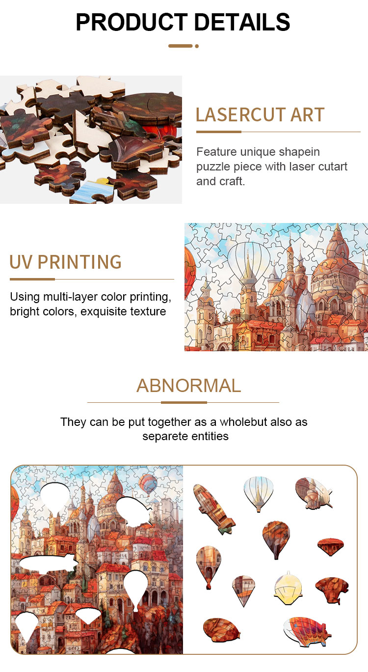 • Laser-Cut Art: Every puzzle piece has a unique shape created with high-precision laser cutting, combining craftsmanship with functionality.