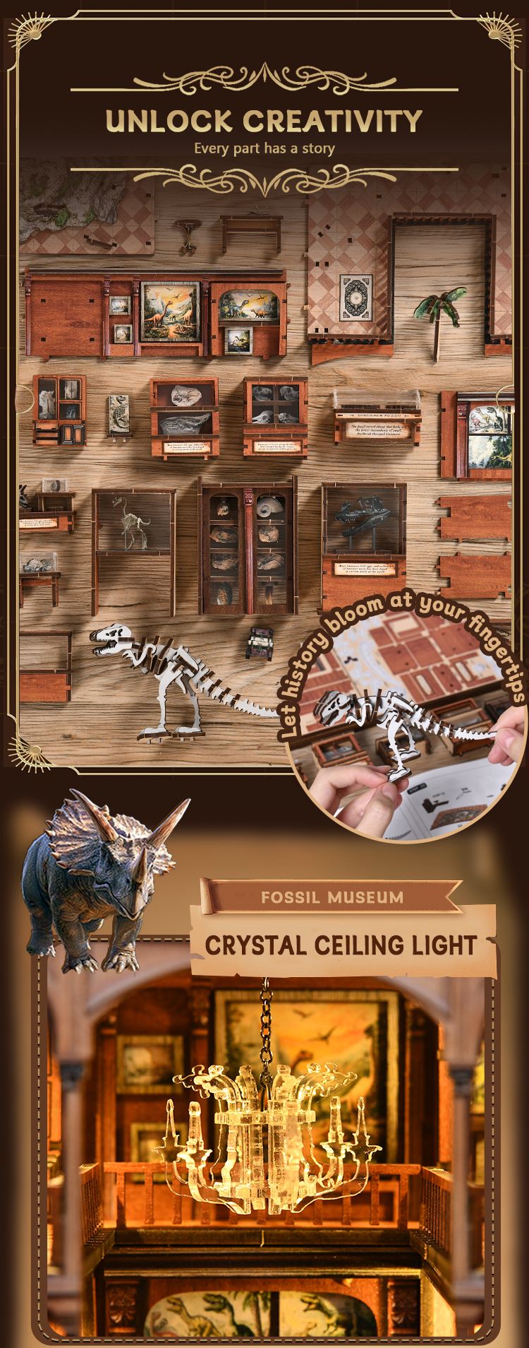 Enjoy the therapeutic process of building your miniature fossil museum with a step-by-step guide. Assembly time is estimated at 6–8 hours, making it a perfect weekend project.